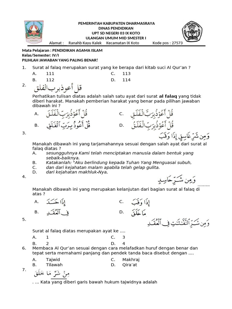 Pendidikan Agama Islam (PAI) merupakan mata pelajaran yang esensial dalam membentuk karakter dan spiritualitas peserta didik. Lebih dari sekadar menghafal ayat atau memahami sejarah, PAI menanamkan nilai-nilai luhur, akhlak mulia, serta pemahaman akan ibadah dan keyakinan yang benar. Di tengah perjalanan pembelajaran semester genap, Penilaian Tengah Semester (PTS) menjadi momen penting untuk mengukur sejauh mana pemahaman siswa terhadap materi yang telah diajarkan. Khususnya bagi siswa kelas 4, PTS PAI semester 2 menuntut persiapan yang matang agar hasil yang diperoleh optimal.